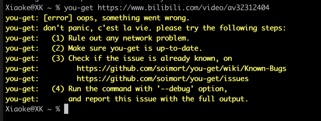有时候需要下载youtube的视频,特别现在b站无广告,真是不错,Mac下下载这些视频网站的视频不太容易,好在有大神写了工具,you-get我觉得就非常好用,其官网地址:https://github.com/soimort/you-get,几乎兼容了各个视频网站的下载.