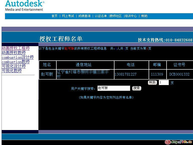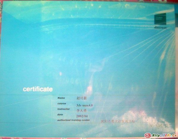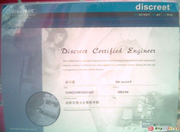 这是我刚学3维的时候考的证啊,一次都没用过.在家落灰呢.名气挺响亮的,什么Discreet认证工程师,Discreet认证产品高手.我考的时候全国考下证的才2000多人,现在看数量猛彪7000多人啦.哈哈.抓图留念一下,当时没有手机,手机号码好像还是我姐的呢.