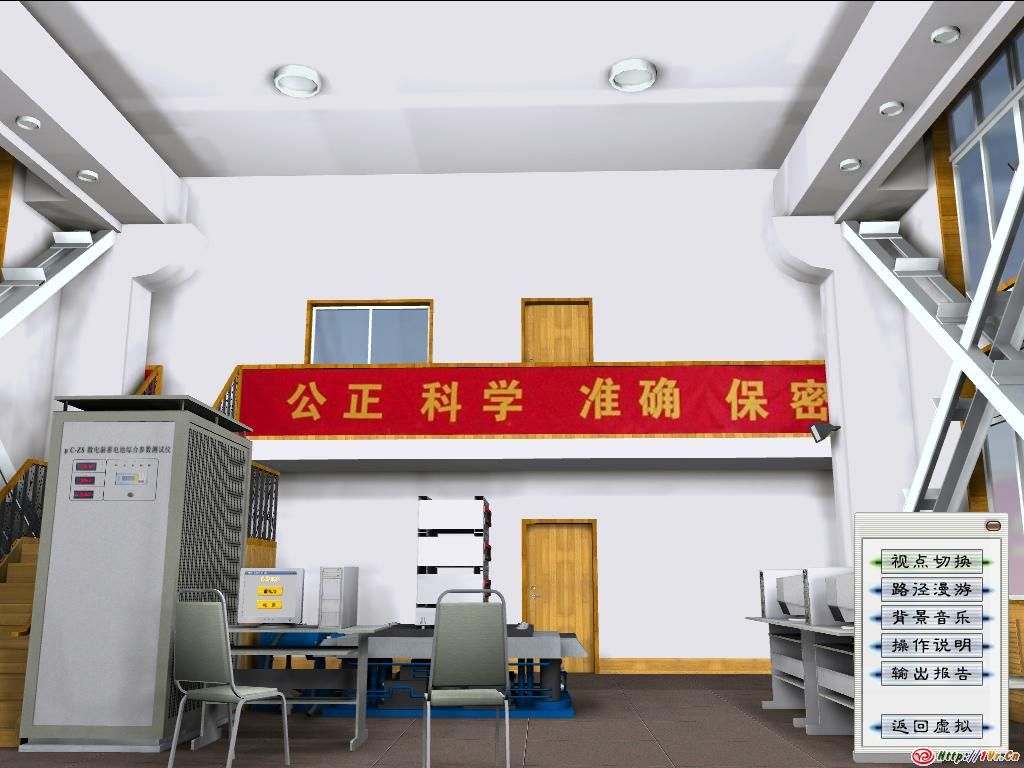本实验室虚拟系统功能:免插件免安装免调试单一可执行文件技术,各重要角度视点快速跳转,无限时自动漫游展示功能,人机交互试验功能,全屏及图形菜单控制技术,背景音乐控制等等.