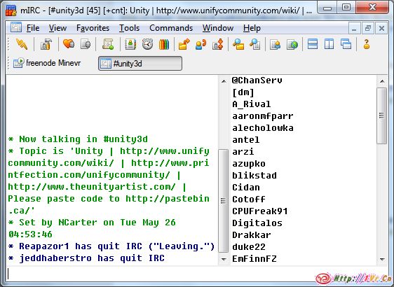 非常不错的一款IRC客户端软件,用起来挺方便.大家可以用它一起到Unity官方的IRC聊天室讨论问题吧.