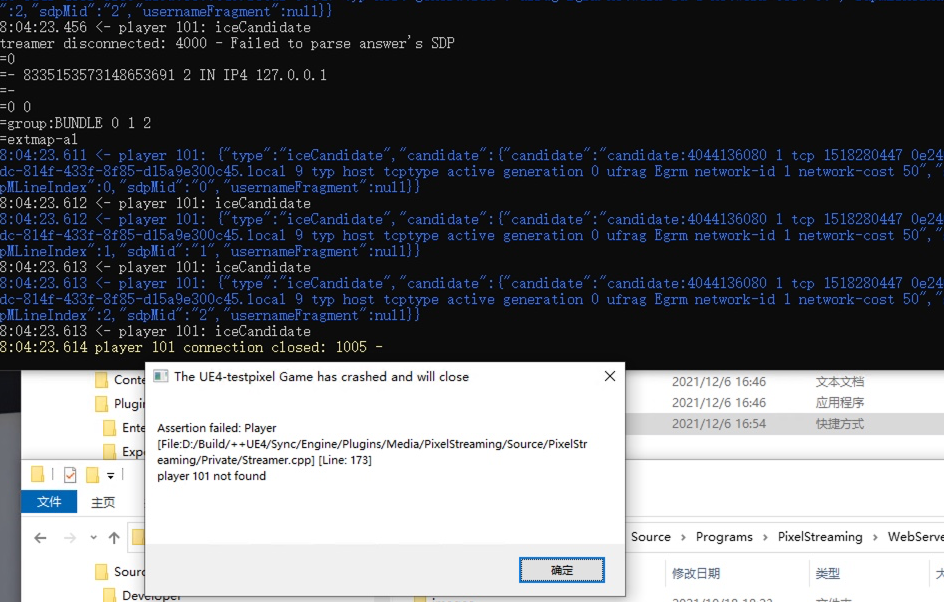 Assertion failed: Player [File:D:/Build/++UE4/Sync/Engine/Plugins/Media/PixelStreaming/Source/PixelStreaming/Private/Streamer.cpp] [Line: 173]