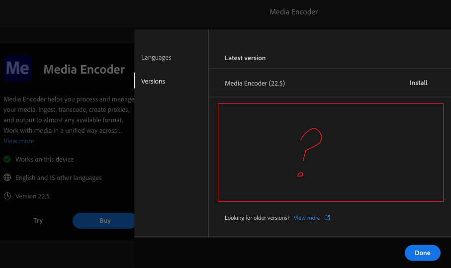 Adobe的版本号与年份看不出直接的对应关系,就像Photoshop 2022版的版本号是23.4.2,不过它不重要,本来我是要找2021版本的AE或者PS下载,从其官网下载了Adobe Creative Cloud,结果里面只有最新版的APP下载,不能选择旧版本APP安装,但在官网的帮助页面描述是可以选择不同版本的APP进行安装的.也尝试搜寻旧版的Adobe Creative Cloud安装,也并没有找到ACC的旧版.