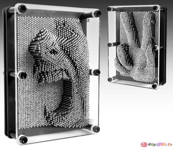 Kinect骨架追踪处理流程的核心是一个无论周围环境的光照条件如何,都可以让Kinect感知世界的CMOS红外传感器.该传感器通过黑白光谱的方式来感知环境:纯黑代表无穷远,纯白代表无穷近.黑白间的灰色地带对应物体到传感器的物理距离.它收集视野范围内的每一点,并形成一幅代表周围环境的景深图像.传感器以每秒30帧的速度生成景深图像流,实时3D地再现周围环境.如果你玩过pin point impression 3D针模玩具可能更容易理解这一技术——将你的手(或者脸,如果你愿意的话)按压在这种玩具上,就可以产生你身体某一部位的简单3D模型.