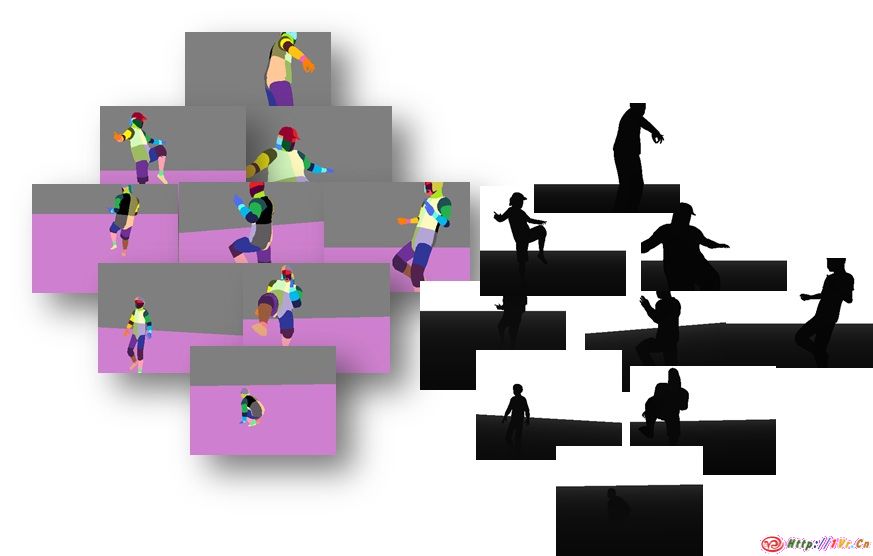 看了上面的介绍,你也许要问我们如何教会Kinect辨识人体部位.开发这一人工智能(被称为Exemplar(模型)系统)可不是一件轻松的事情:数以TB计的数据被输入到集群系统中来教会Kinect以像素级技术来辨认手、脚以及它看到的其他身体部位.下图就是我们用来训练和测试Exemplar的数据之一.